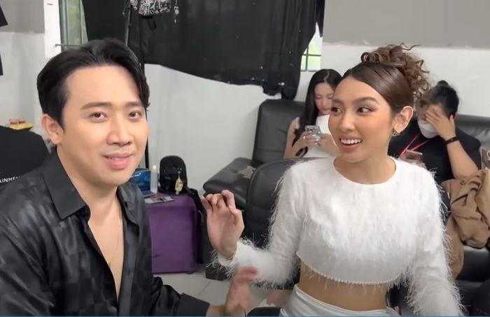 | Hình ảnh Trấn Thành và Thuỳ Tiên trong hậu trường một chương trình được cho là "Người ấy là ai". |
