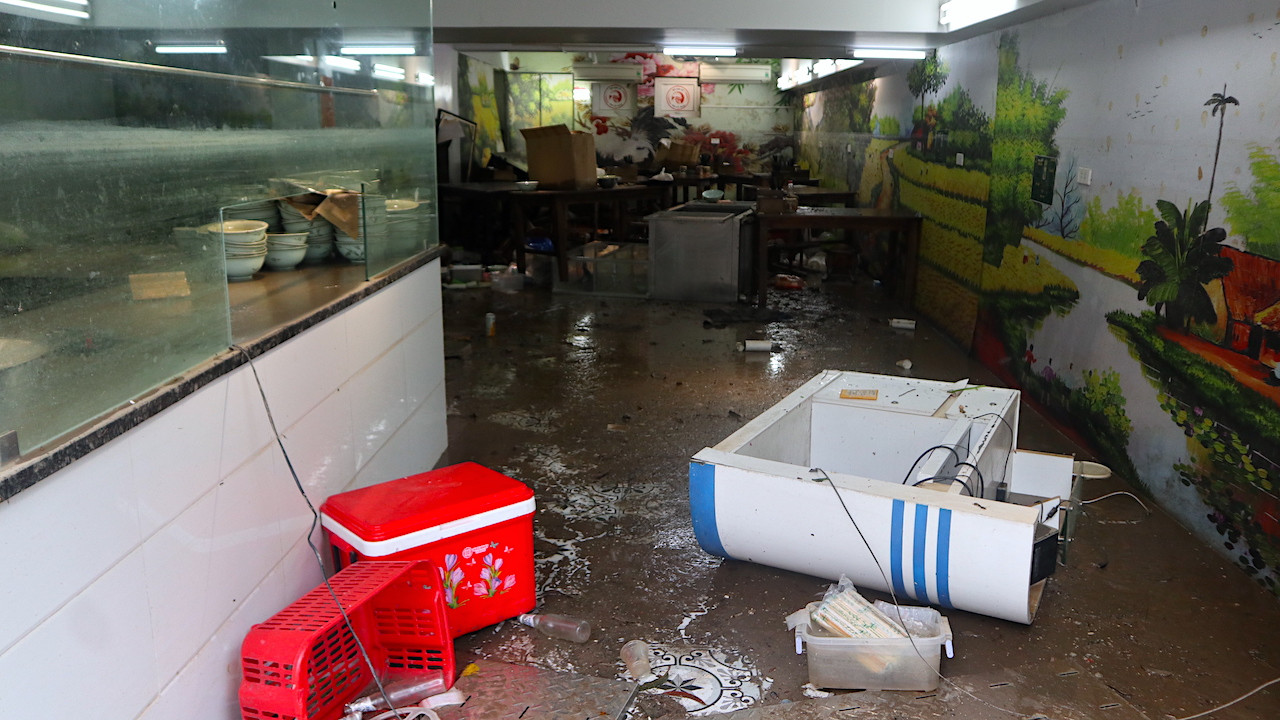 | Nhiều hộ dân của khu vực này chia sẻ, thiệt hại của đợt ngập này rất nghiêm trọng do nhiều hàng hoá nhập về kho ngâm nước hỏng không thể bán. |
