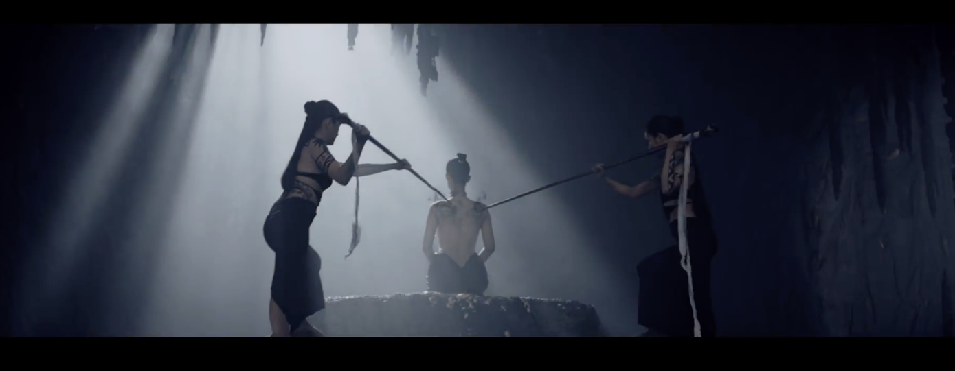 Trước đó, trong teaser MV Đôi Mi Em Đang U Sầu, Đông Nhi xuất hiện trong bối cảnh hang động. Hai diễn viên nữ đang vẽ hình xăm trên lưng cô, làm bật lên sự huyền bí, mang đậm hơi hướng huyền sử. Cảnh tranh đấu sau tấm rèm, khung hình zoom cận hình xăm trên lưng, chiếc vòng cổ thiết kế độc đáo, với dòng kí tự cổ phần đuôi mắt được xem như những chi tiết ẩn ý sẽ xuất hiện trong MV. Nữ ca sĩ cũng “chiêu đãi” khán giả câu hát: “Đôi mi em đang u sầu”.