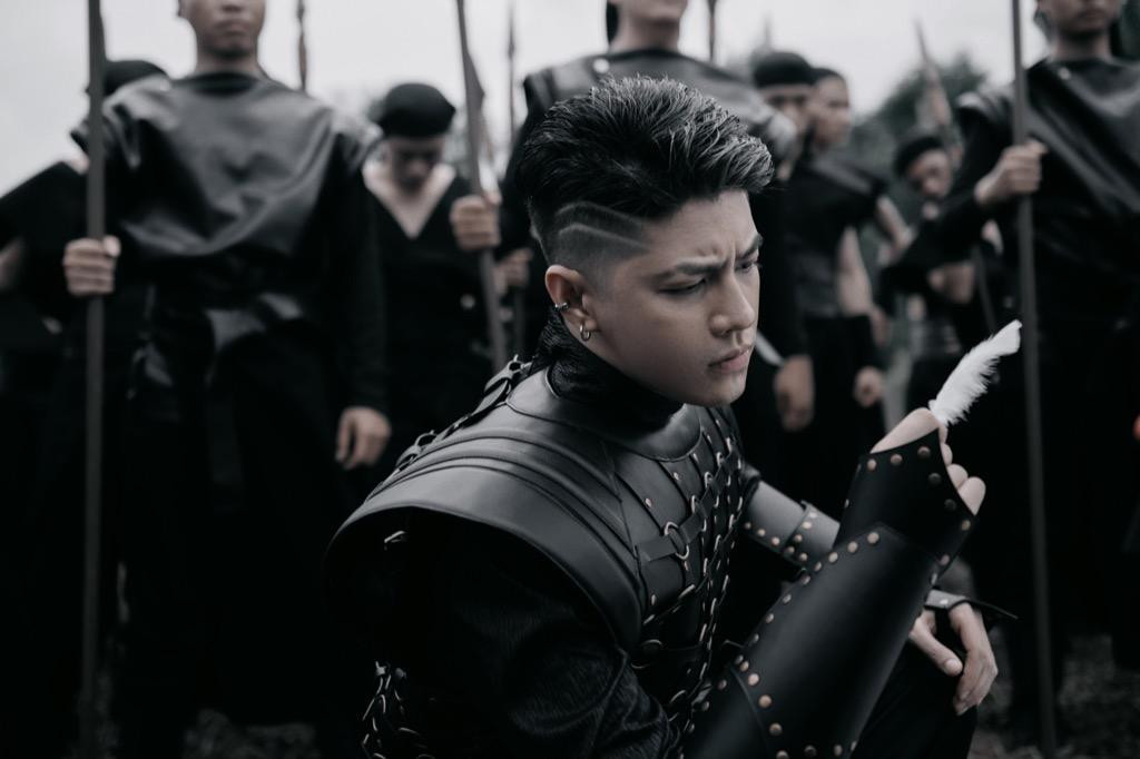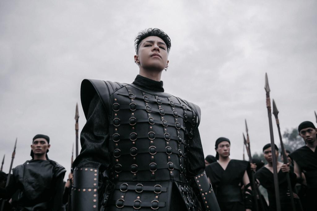 Đúng như tinh thần huyền sử của MV, Noo Phước Thịnh cũng xuất hiện với tạo hình cổ trang, trong trang phục tướng quân rắn rỏi, cùng biểu cảm gai góc. Nam ca sĩ còn cầm trên tay chiếc lông vũ trắng, khiến người xem liên tưởng tới câu chuyện Mỵ Châu - Trọng Thủy.