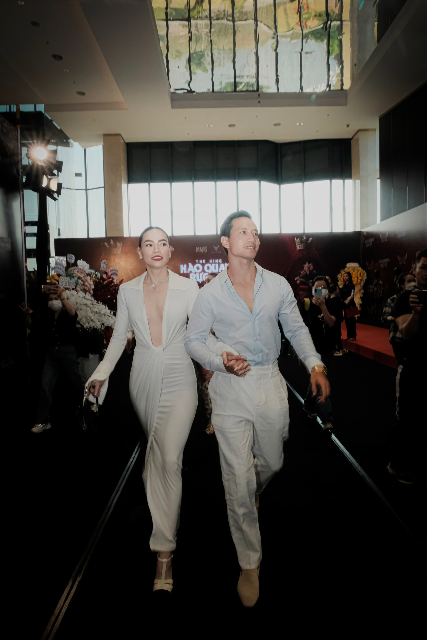 Đến với sự kiện này, Hồ Ngọc Hà và Kim Lý đều diện đồ với tông màu nhẹ nhàng, nhã nhặn. Hà Hồ chọn bộ váy trắng có đường khoét cổ đầy hiểm hóc, tối giản phụ kiện nhưng vẫn xinh đẹp rạng rỡ. Kim Lý cũng chọn đồ rất đồng điệu với quần tây trắng, áo sơ mi xanh nhạt. Giữa dàn khách mời đông đảo diện đồ đen, cặp đôi Hồ Ngọc Hà, Kim Lý bỗng trở nên nổi bật trong sự kiện.