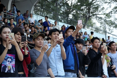 Nhiều CĐV thích thú ghi lại màn biểu diễn của Sơn Tùng. Tuy nhiên, với sự góp mặt của một trong những ca sĩ hot nhất làng giải trí Việt Nam, nhưng số lượng khán giả đến SVĐ Thống Nhất vẫn không tăng lên là bao.