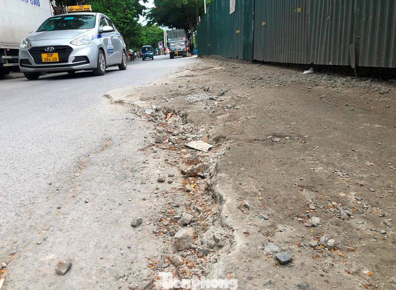 | Với mặt đường phố Vũ Tông Phan đoạn qua công trường giếng kỹ thuật trước số nhà 549 còn bị lún, nứt, nghiêng về phía sông Tô Lịch. Mặt đường lún dẫn đến chân hàng rào thi công bị hở khoảng 20cm so với mặt đường. |