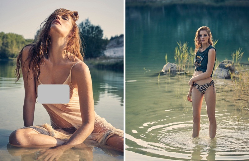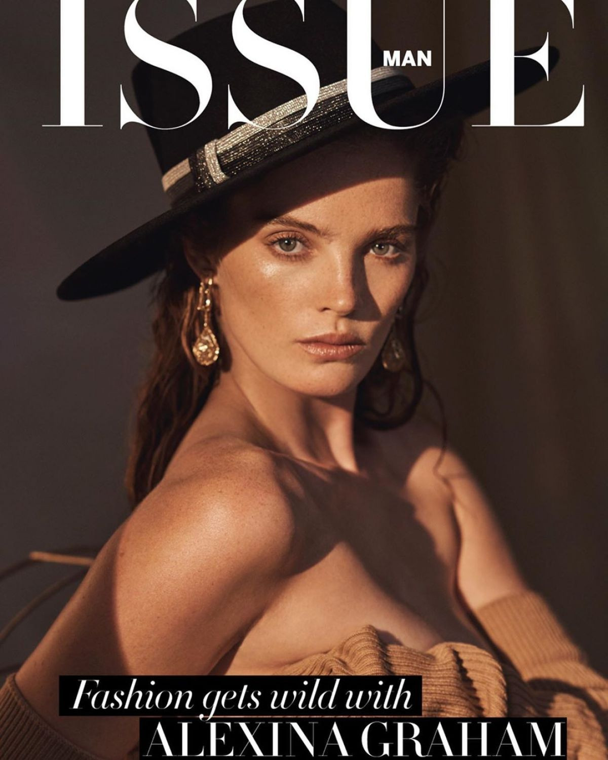 Alexina Graham hững hờ che ngực trần trên bìa tạp chí Issue số mới.