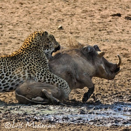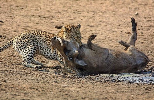 Hình ảnh báo đốm cắn chết lợn rừng với nhát cắn chí mạng được nhiếp ảnh gia Lisl Moolman ghi lại ở Vườn quốc gia Kruger. Con báo đốm đang đói và đi lang thang săn mồi thì phát hiện con lợn rừng đang say giấc nồng ở gần đó.
