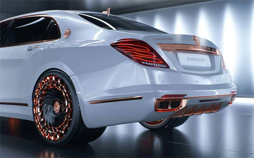 Phần đuôi xe tiếp tục chủ đề siêu cá tính với bộ khuếch tán cỡ lớn và vị trí vốn được biết đến là "Maybach" được thay bằng "Emperor". Sự hiện diện của thương hiệu Scaldarsi còn có logo hãng trên lưới tản nhiệt, thiết kế cột C và cốp xe.