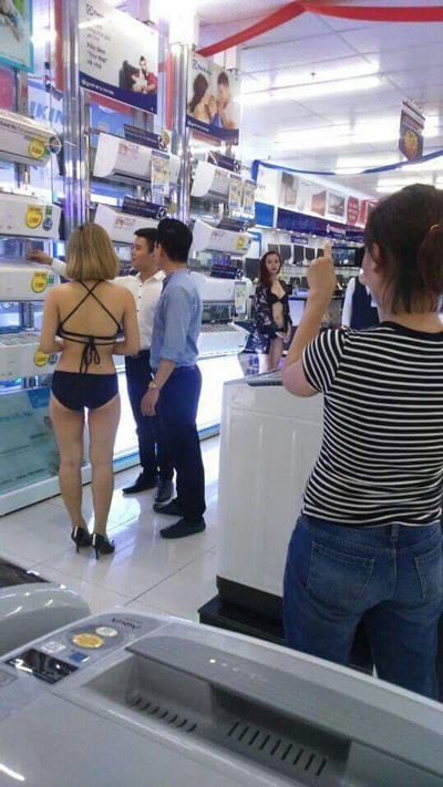 Trước đó, vào cuối tháng 4 vừa qua, một siêu thị điện máy trên địa bàn Hà Nội cũng khiến dư luận bức xúc khi cho dàn người mẫu mặc bikini đứng chào và tiếp thị khách. Ngay sau khi nhận được phản ánh từ báo chí và người dân, Sở Văn hóa, Thể thao và Du lịch cũng vào cuộc xem xét mức độ vi phạm và xử phạt hành chính đối với đơn vị này.