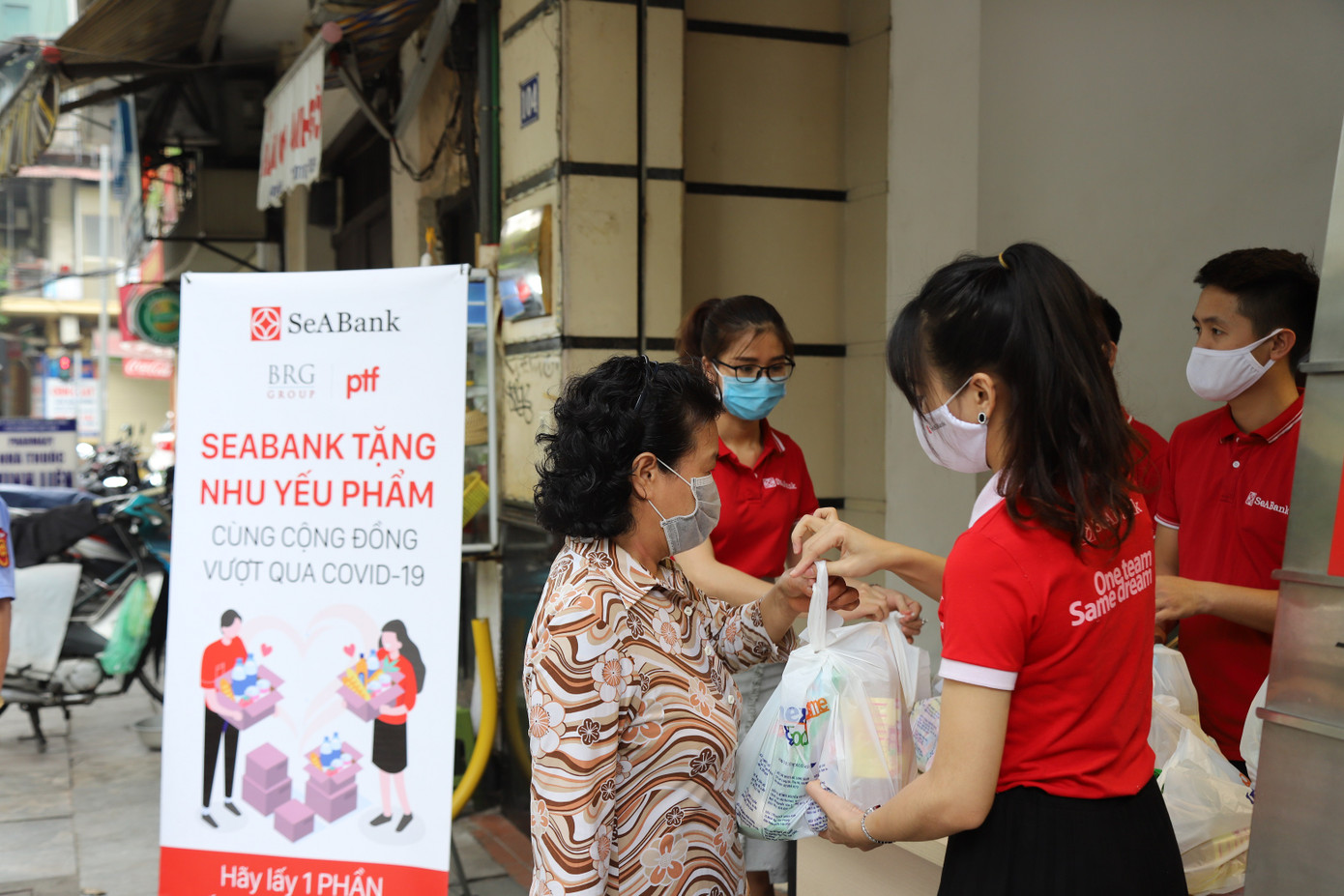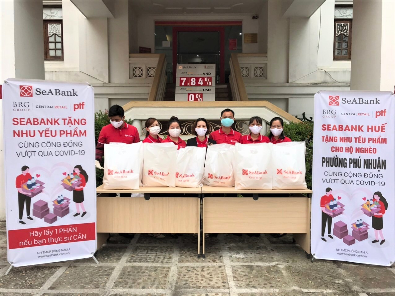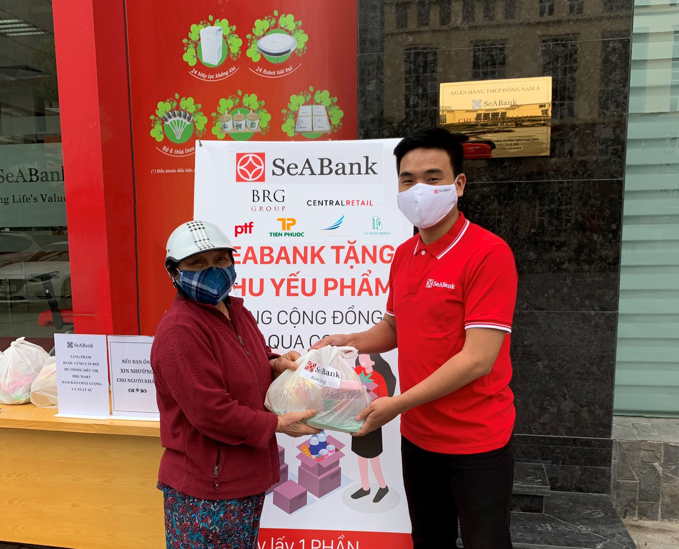 Bên cạnh việc phát tặng lương thực trực tiếp tại các điểm giao dịch, SeABank còn kết hợp với UBND các phường nơi đặt điểm giao dịch để trao quà cho những hộ nghèo trong phường.