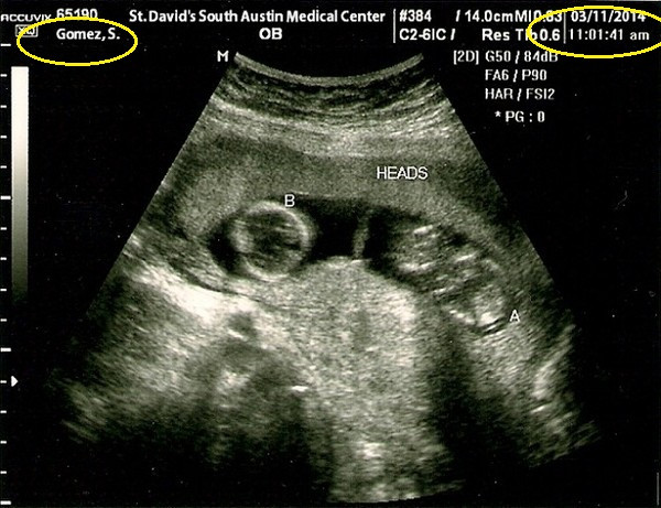 Bên cạnh đó, trên bức ảnh này ghi thời gian được thực hiện là vào ngày 11/3/2014 tại Trung tâm y tế St.David's South Austin, ở Austin, Texas. Nhưng trong khoảng thời gian đó, Selena lại đang có mặt tại New York để chụp ảnh cho chiến dịch quảng cáo của một hãng thời trang nên chuyện đi siêu âm là không thể.