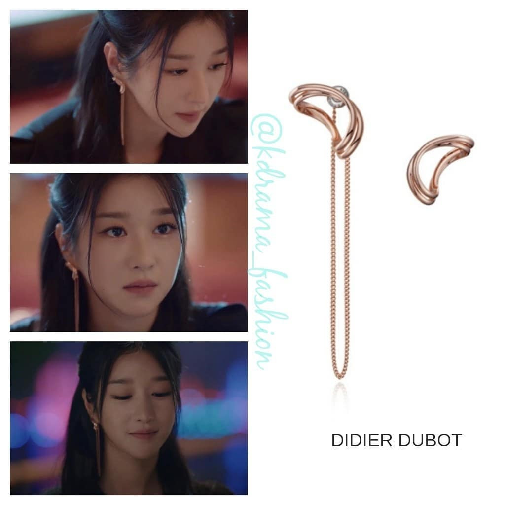 Cô đeo đôi khuyên tai bất đối xứng trông có vẻ sang chảnh nhưng giá lại khá mềm so với những phụ kiện hay dùng, đôi khuyên tai đến từ hãng DIDIER DUBOT có giá chỉ khoảng 3,8 triệu đồng.
