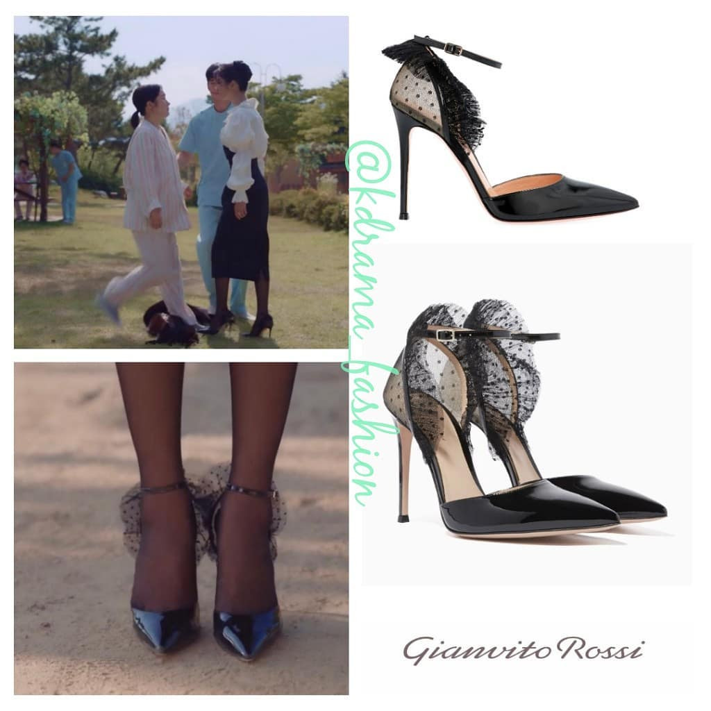 Đôi giày "tiểu thư" vô cùng sang chảnh được Ko Mun Yeong đi trong phân cảnh này của tập 7 đến từ hãng Gianvito Rossi, có giá khoảng 20 triệu đồng.