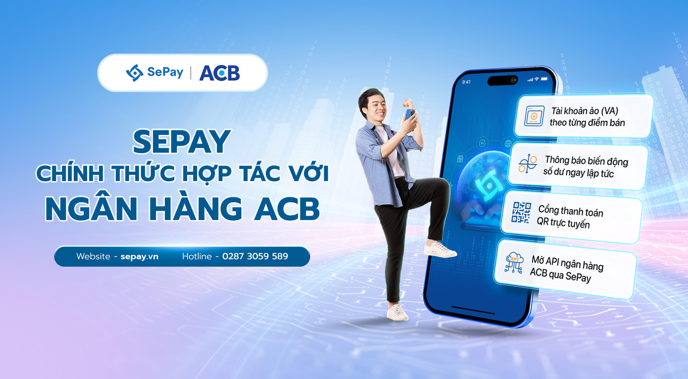 Với API từ ACB, SePay có thể triển khai các tiện ích như chia sẻ biến động số dư tức thì; cổng thanh toán trực tuyến. Đặc biệt, Công nghệ tài khoản ảo (VA) tiên tiến của ACB giúp doanh nghiệp có thể dễ dàng quản lý doanh thu từng chi nhánh, tối ưu hóa quy trình và nâng cao hiệu quả kinh doanh.