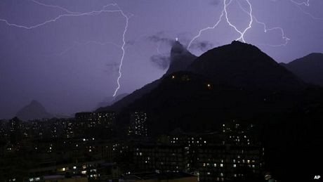 Tượng Chúa Cứu Thế, cao 38 m, nằm trên đỉnh núi Corcovado và thường xuyên bị sét đánh.