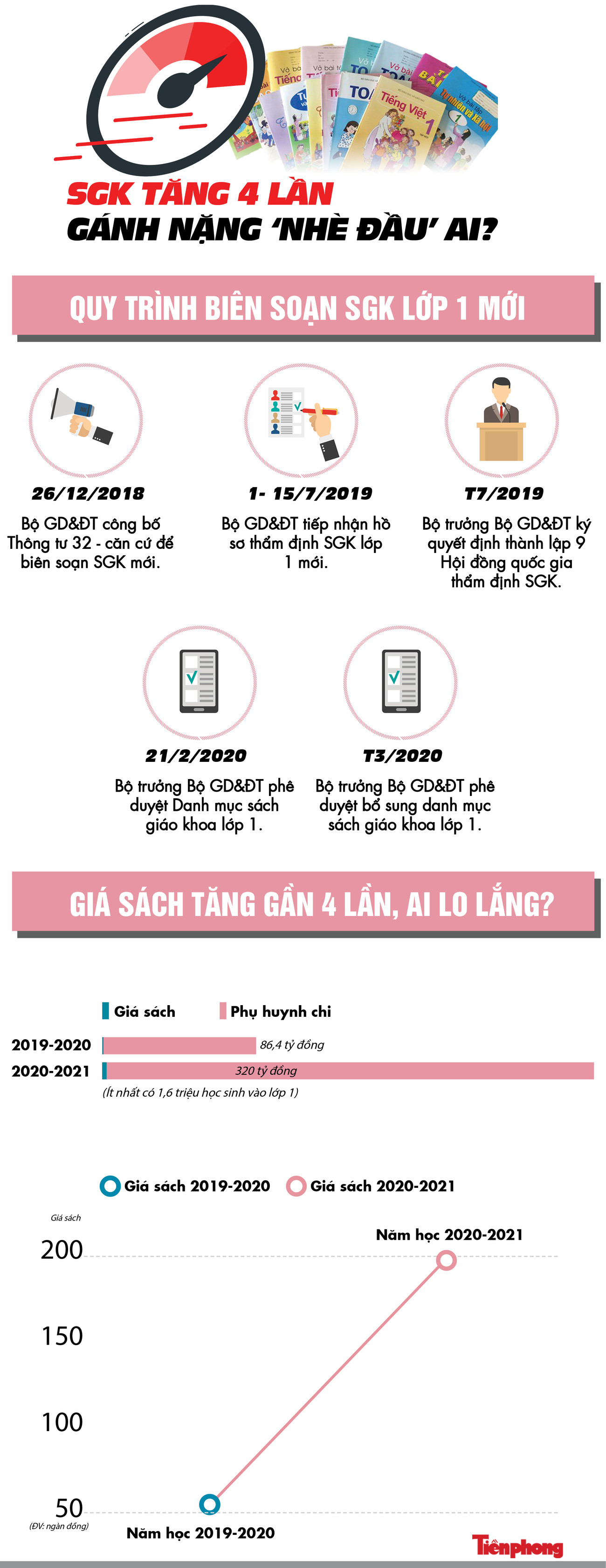 TPO - Giá sách giáo khoa lớp 1 mới được các Nhà xuất bản đưa ra tăng chóng mặt, gấp gần 4 lần sách cũ khiến không ít người 'ngã ngửa'. Gánh nặng giá sách này, ai sẽ phải hứng chịu?