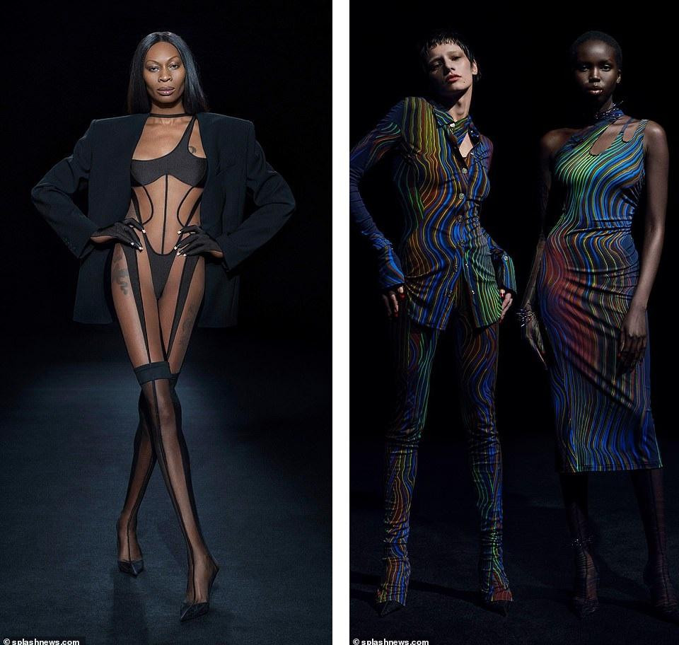 | BST mới của Mugler tập trung vào những gam màu đơn sắc, thiết kế đa dạng, nhấn vào các đường cắt xẻ. |