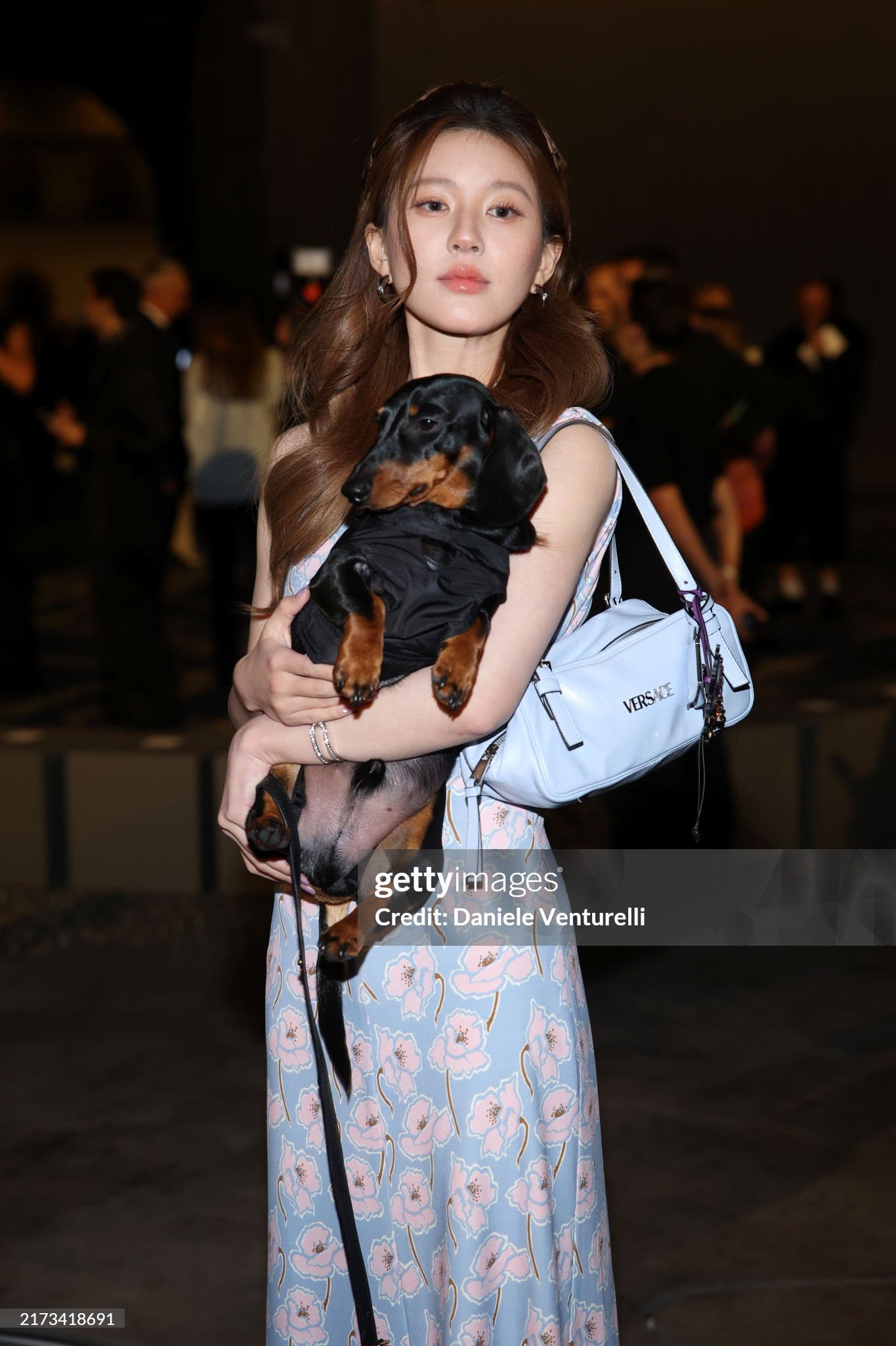| Triệu Lộ Tư tham dự show diễn của nhà mốt Ý cùng hai chú cún cưng tên Doe và Điểm Điểm. |