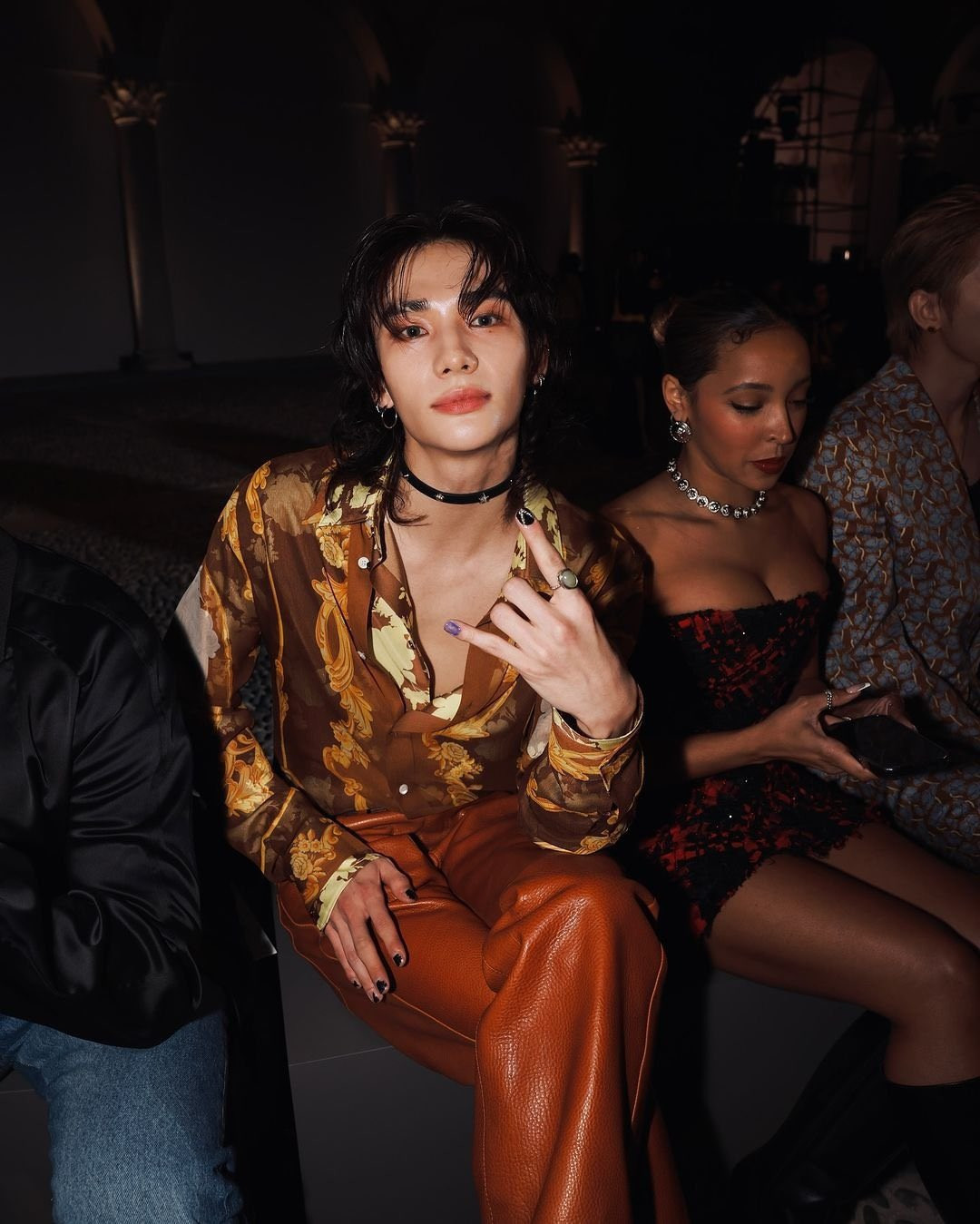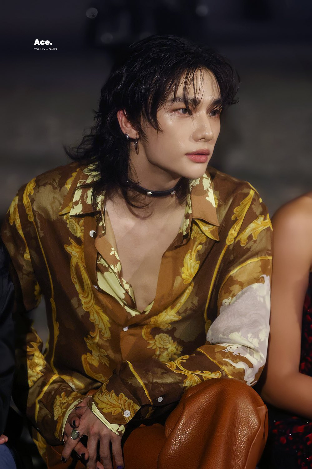 Hyunjin (Stray Kids), đại sứ toàn cầu đến từ Hàn Quốc đầu tiên của Versace là ngôi sao được mong chờ nhất nhì sự kiện. Trước đó, nam idol có tạo hình sân bay "chất chơi", với tổng giá trị khoảng hơn 200 triệu.