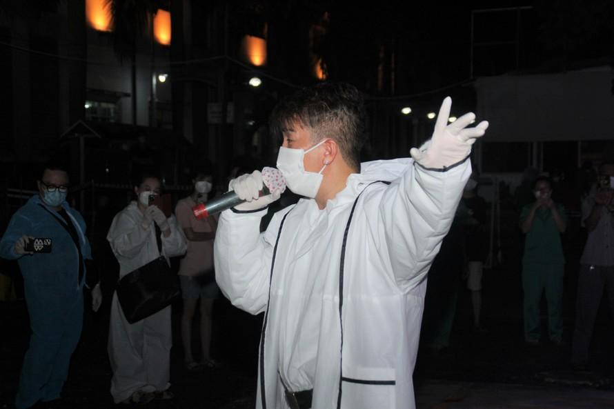 Đàm Vĩnh Hưng mặc áo choàng trắng hát tại bệnh viện dã chiến, khu cách ly