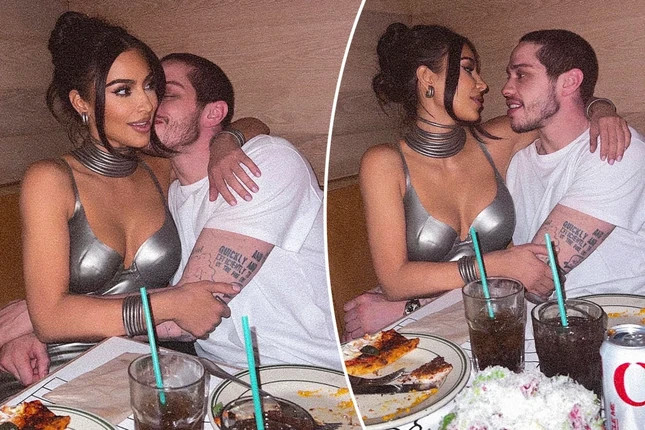 Ngày 11/4, Kim Kardashian đăng lên Instagram và Twitter cá nhân hai bức ảnh chụp cùng bạn trai kém 13 tuổi Pete Davidson. Trong ảnh, bà chủ Skims mặc váy hai dây màu bạc tôn vòng một gợi cảm ăn tối trong quán pizza với Pete. Cặp đôi “chị - em” ôm ấp tình cảm, hết thơm má, lại trao nhau ánh nhìn trìu mến. Hai bức ảnh lập tức khiến cộng đồng mạng “dậy sóng”. Chỉ sau vài giờ đăng tải, lượng người nhấn “Thích” đã lên tới con số hơn 6,6 triệu. Đa số, bao gồm cả em gái Kim - Khloe Kardashian, đều bày tỏ sự phấn khích trước màn khoe ân ái của Kim và tình trẻ, cho rằng cặp đôi rất đáng yêu. (XEM CHI TIẾT)