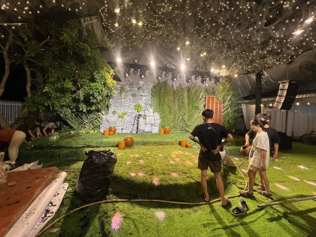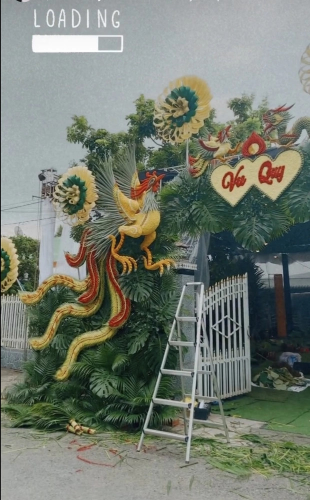 Theo đó, công tác chuẩn bị cho đám cưới tại quê nhà cô dâu đang dần hoàn thiện. Tên của Puka và Gin Tuấn Kiệt được đính kết trên khung cửa bằng gỗ, phía sau trang trí lá dừa. Ngoài ra, cổng hoa được đầu tư độc đáo, công phu.