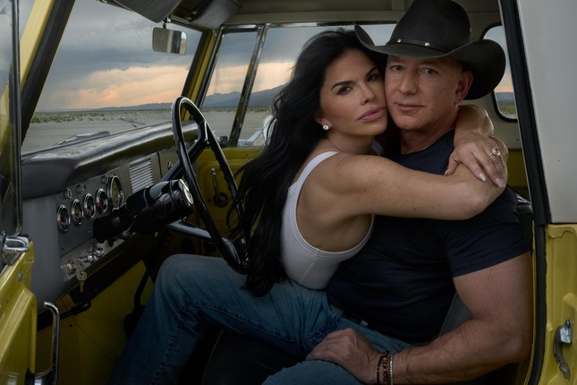 Ngày 13/11, tạp chí Vogue đăng lên Instagram bức ảnh tỷ phú Jeff Bezos và vị hôn thê Lauren Sanchez chụp cho cuộc phỏng vấn chung trên ấn phẩm tháng 12/2023. Trong ảnh, nữ MC 53 tuổi ôm ông chủ Amazon trong cabin xe tải. Sanchez mặc áo ba lỗ màu trắng trong khi chồng sắp cưới chọn áo phông đen, quần jean và đội mũ cao bồi. Họ áp mặt vào nhau và nhìn về phía ống kính.