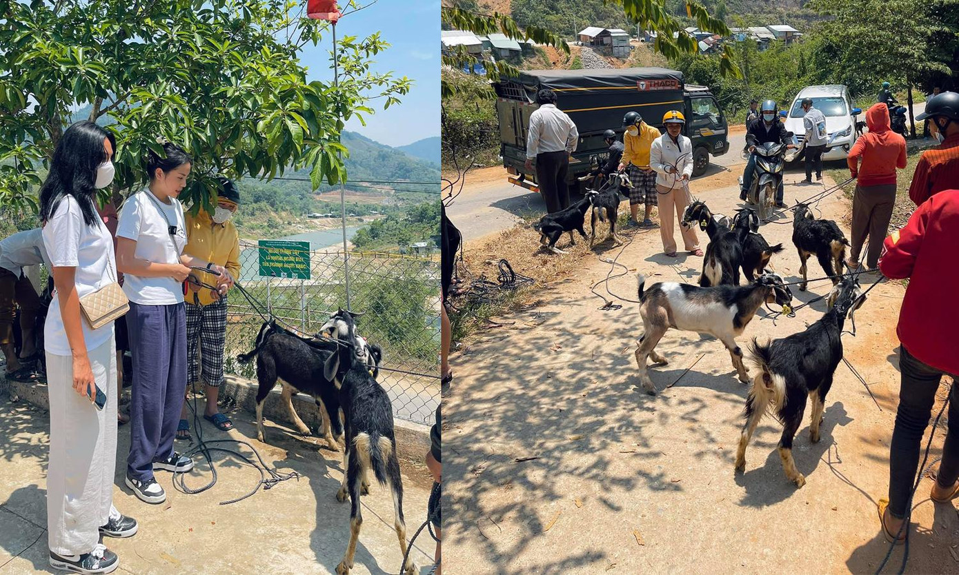 Hoa hậu Kỳ Duyên trở lại vùng lũ, mua dê tặng bà con ở Nam Trà My