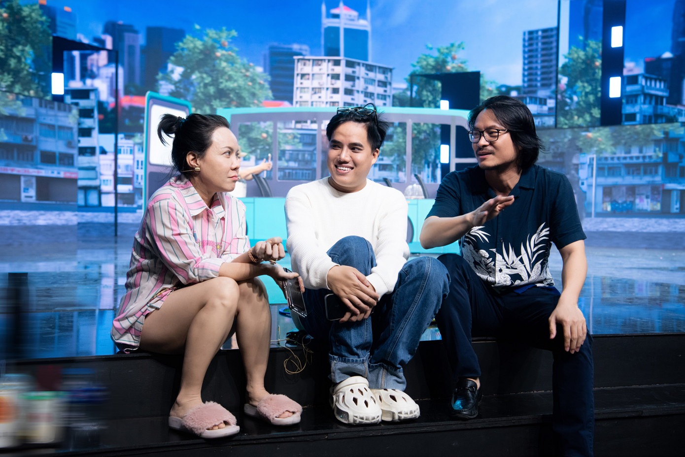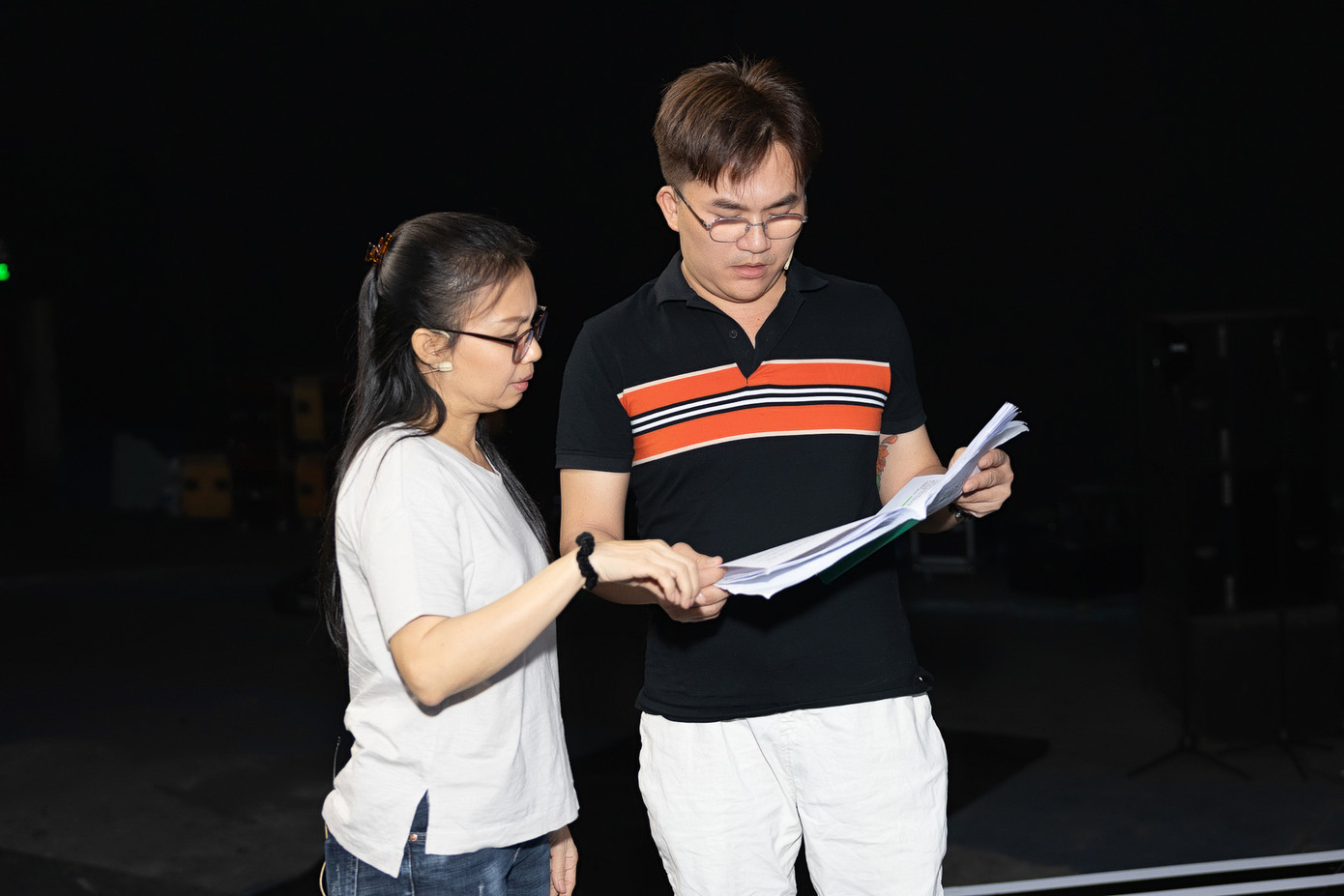 Theo một số hình ảnh hậu trường Táo Xuân 2024 chia sẻ, ca sĩ Cẩm Ly và danh hài Việt Hương để mặt mộc đi tập kịch. Việt Hương vào vai Táo Hồng, trong khi Cẩm Ly đảm nhận nhân vật Thiên Hậu.
