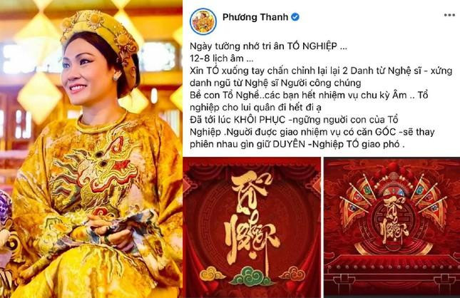 Vừa qua, các nghệ sĩ đồng lòng hướng về ngày giổ tổ nghề sân khấu. Nữ ca sĩ Phương Thanh đã gây chú ý khi viết: “Ngày tưởng nhớ tri ân Tổ nghiệp, 12-8 lịch âm. Xin Tổ xuống tay chấn chỉnh lại lại 2 danh từ 'nghệ sĩ' cho xứng danh ngũ từ nghệ sĩ, người công chúng. Bề con Tổ nghề... các bạn hết nhiệm vụ chu kỳ Âm, Tổ nghiệp cho lui quân đi hết đi ạ. Đã tới lúc khôi phục nguời con của Tổ nghiệp. Nguời đuợc giao nhiệm vụ có căn gốc, sẽ thay phiên nhau gìn giữ duyên - nghiệp Tổ giao phó”. (XEM CHI TIẾT)