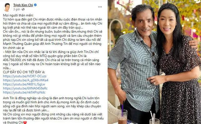 Thời gian qua, thông tin xoay quanh cuộc sống khó khăn của nghệ sĩ Thương Tín liên tục nhận được sự quan tâm của đông đảo khán giả. Đặc biệt, mới đây, chia sẻ cùng báo chí, nghệ sĩ Thương Tín cho rằng NSƯT Trịnh Kim Chi có sự nhập nhằng về số tiền 244 triệu đồng nhận từ mạnh thường quân, dùng để mua bảo hiểm của con gái. Nam nghệ sĩ ngỏ ý muốn để mình tự giữ số tiền này và sẽ tự mua bảo hiểm theo ý của gia đình. Trước thông tin trên, “bà bầu sân khấu” đã quyết định lên tiếng. (XEM CHI TIẾT)