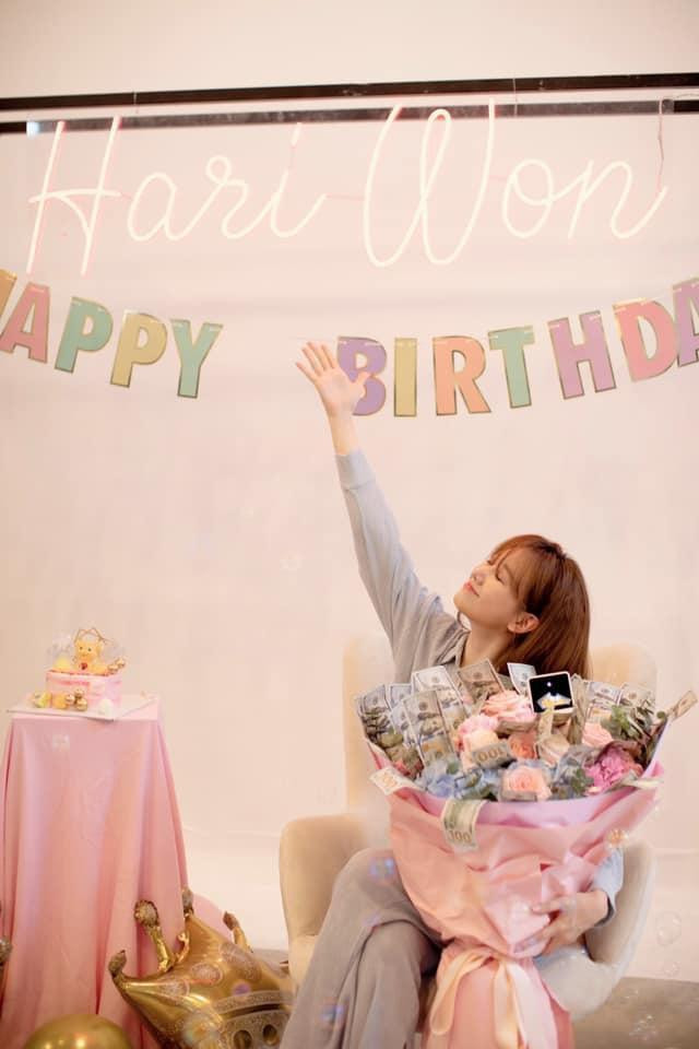 Hari Won ôm bó hoa ‘đồng tiền’ dịp sinh nhật, Trấn Thành gửi lời mật ngọt đến vợ