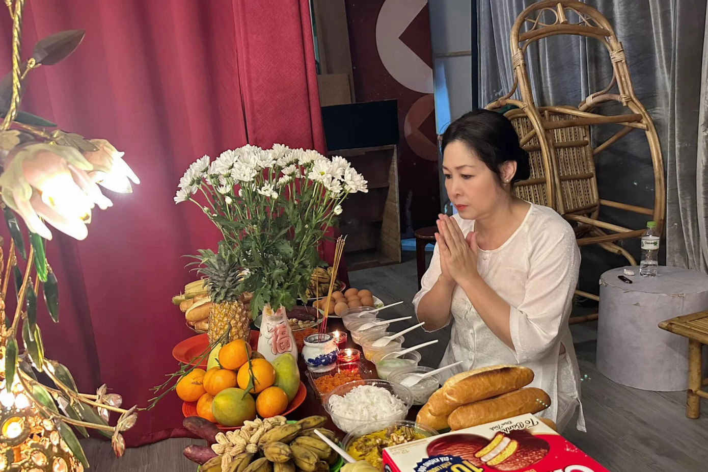 NSND Hồng Vân làm mâm cúng nhân ngày giỗ của nghệ sĩ Anh Vũ (1/4) ngay tại sân khấu của mình. Cô chia sẻ hình ảnh đàn em quá cố là nghệ sĩ Anh Vũ và Mai Phương kèm dòng trạng thái bày tỏ nỗi buồn khi cả hai đã rời sân khấu tròn 5 năm.