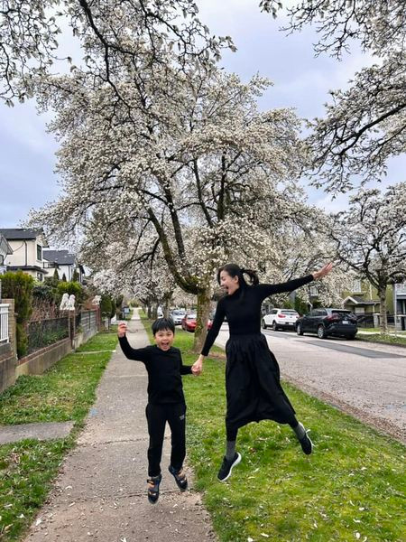 Theo Ái Châu, gia đình cô duy trì cuộc sống tối giản, vừa học hỏi vừa trải nghiệm ở Canada. Tại đây, Huỳnh Đông thường xuyên lái xe chở hai mẹ con khám phá các địa điểm vui chơi mới.
