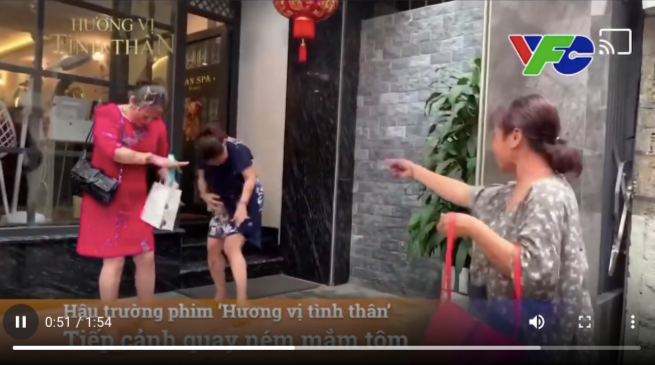 Cảnh bà Bích (Tú Oanh) tới spa của bà Sa (Thu Hạnh) trả thù bằng màn ném mắm tôm khiến nhiều khán giả hả hê, thích thú. Tuy nhiên, hậu trường cảnh quay cho thấy “thủ phạm” ném mắm tôm chính là... đạo diễn Danh Dũng. (XEM CHI TIẾT)