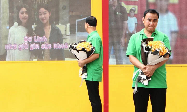 Sau khi nghe chia sẻ của con gái, MC Quyền Linh bật khóc nức nở. Anh tự nhận là người hạnh phúc vì có được tình cảm lớn từ mọi người.