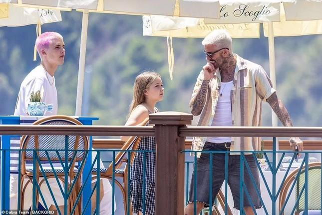 Mới đây, David Beckham được nhìn thấy dẫn con trai thứ Cruz (16 tuổi) và con gái út Harper Seven (10 tuổi) đi ăn trưa tại nhà hàng Lo Scoglio ở vùng biển Amalfi, Italia.