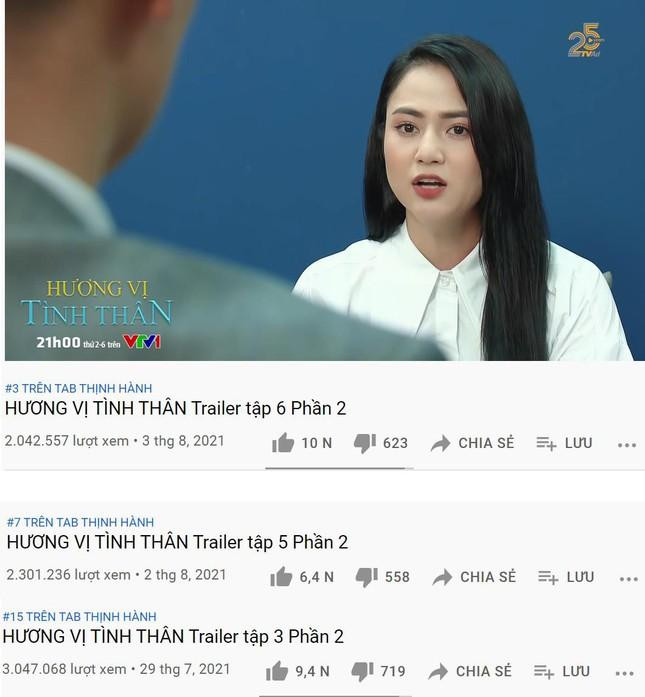 Loạt clip liên quan đến bộ phim Hương vị tình thân nhanh chóng chiếm sóng trên mạng xã hội, khi những bí mật về “gái ngoan” Thiên Nga đang dần được hé lộ. Dù đăng tài chưa đầy 24 tiếng nhưng trailer tập 6 Hương vị tình thân phần 2 đã cán mốc hơn 2 triệu lượt truy cập và leo thẳng top 3 trending YouTube Việt Nam. Bên cạnh đó, trailer các tập 3 và 5 cũng có vị trí cao trong top 15, chứng tỏ sức hút mạnh mẽ của bộ phim. (XEM CHI TIẾT)