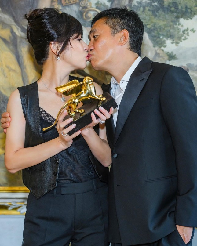 Ngày 3/9, Lưu Gia Linh đăng lên trang cá nhân bức ảnh cầm tượng Sư tử Vàng của Lương Triều Vỹ. Cô đăng bài chúc mừng chồng nhận giải Thành tựu trọn đời tại Liên hoan phim Venice.