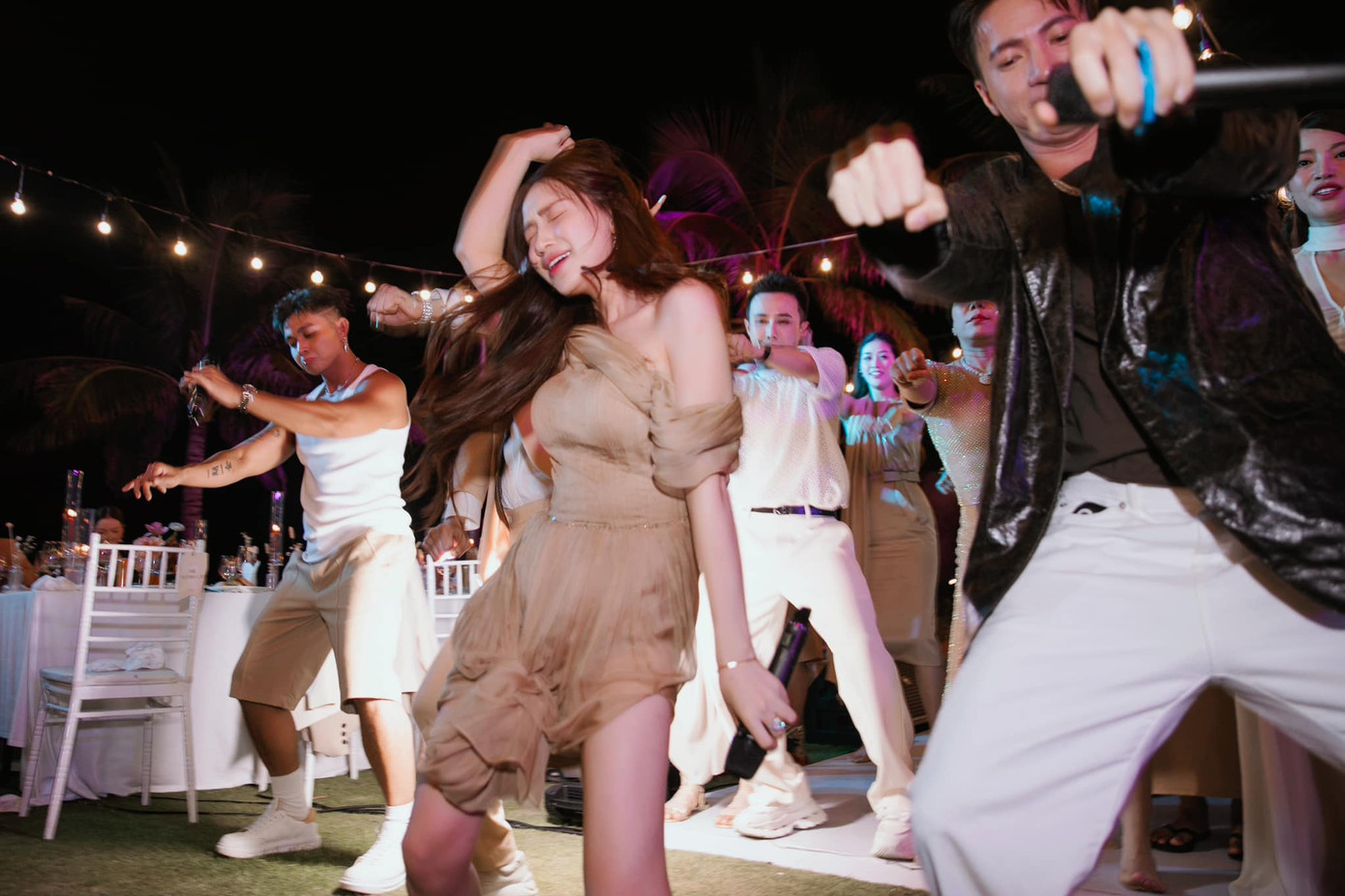 Dàn khách mời dự đám cưới trên bãi biển từ khoảng 15h. Trên trang cá nhân của Lê Dương Bảo Lâm liên tục cập nhật hình ảnh, video từ hôn trường. Các nghệ sĩ đều diện trang phục chỉn chu, thần thái rạng rỡ chung vui cùng Gin Tuấn Kiệt - Puka. Tuy nhiên, sau bữa tiệc tối, không ít nghệ sĩ vì quá phấn khích đã quậy hết mình mà quên cả việc giữ hình ảnh.