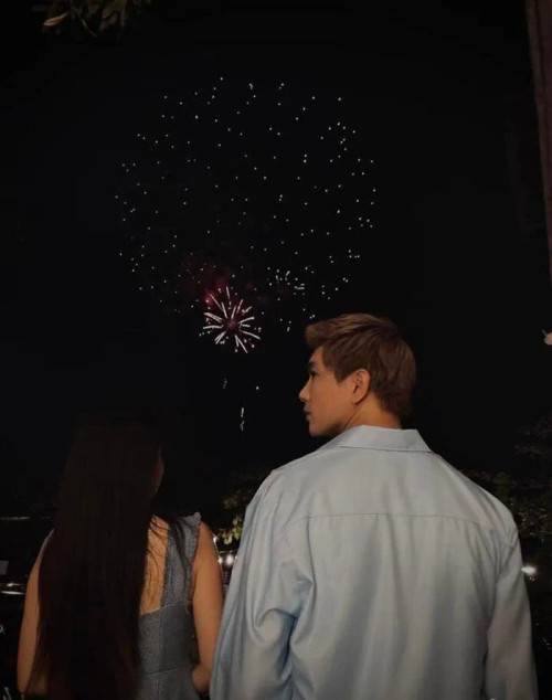 Mới đây, Tim chia sẻ khoảnh khắc ngắm pháo hoa cùng một cô gái. Anh viết: "Dưới bầu trời có hai chiếc bóng. Trái là của em, phải cũng là của em".