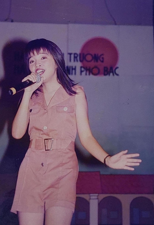 "Vào lớp 10, kẻ mắt nâu và đánh son đỏ. Thi hát, anh crush đèo đi bằng Spacy trắng, sau đó chia tay luôn", cô chia sẻ.