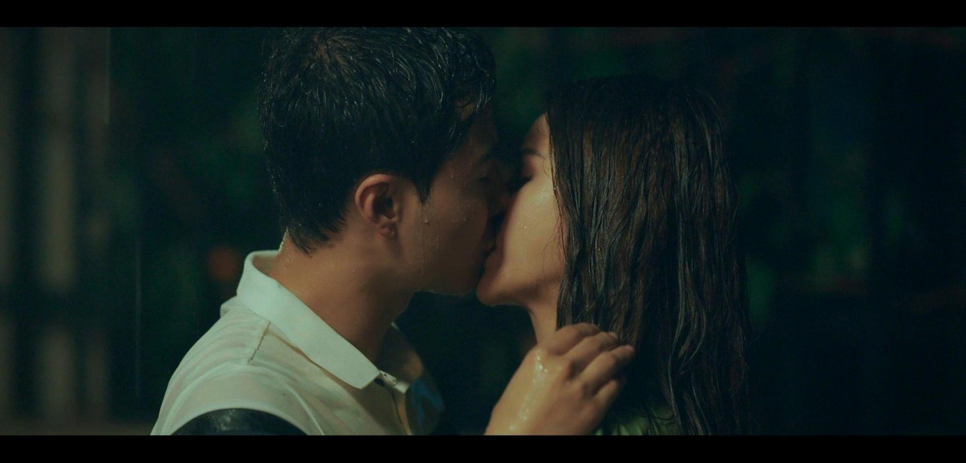 Thanh Sơn- Lương Thu Trang khóa môi ngọt ngào dưới cơn mưa