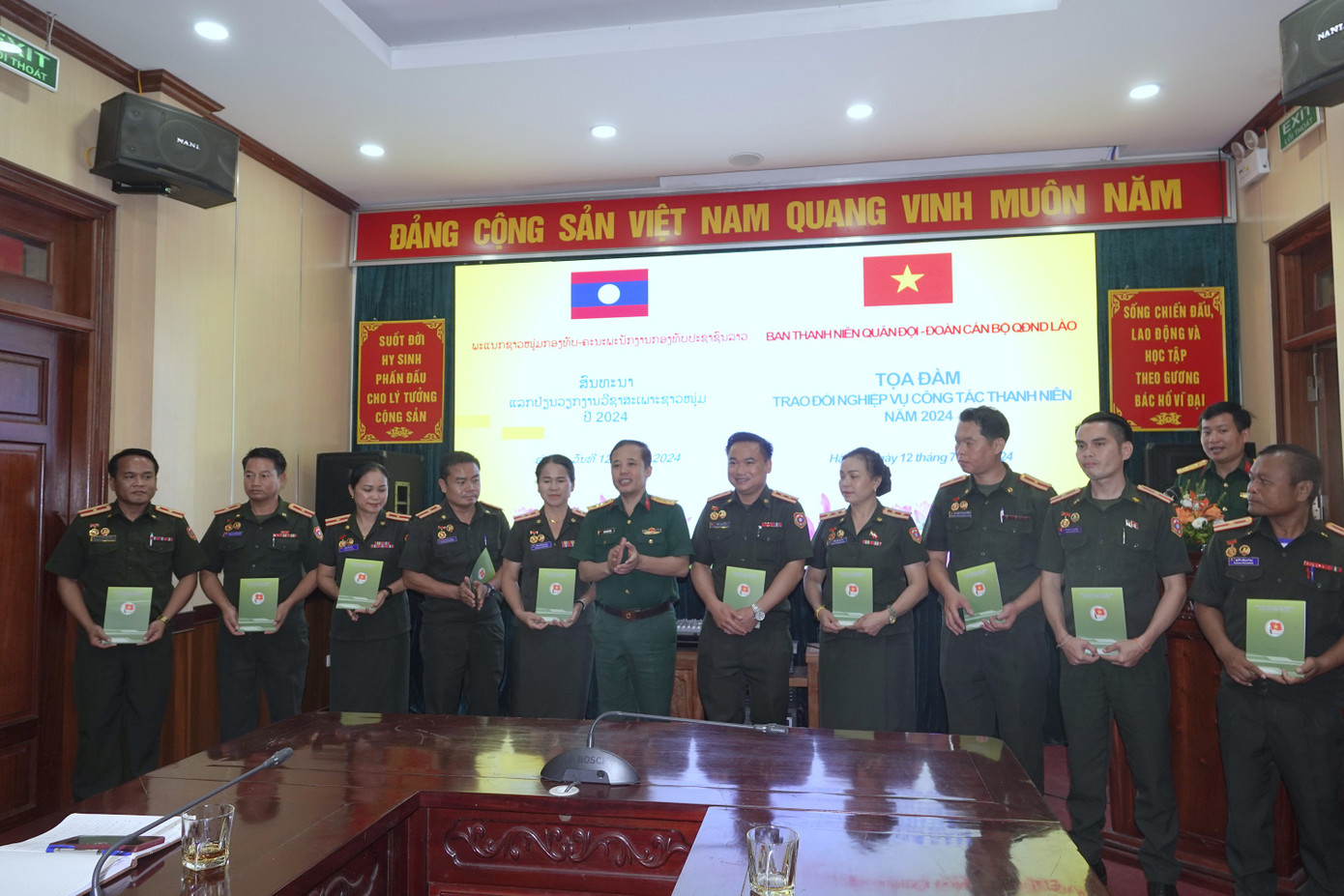 Chiều 12/7, tại Hà Nội, diễn ra Tọa đàm về nghiệp vụ công tác thanh niên Quân đội năm 2024, giữa Ban Thanh niên Quân đội (Tổng cục Chính trị Quân đội nhân dân Việt Nam) và đoàn cán bộ Quân đội nhân dân (QĐND) Lào đang tập huấn tại Việt Nam.