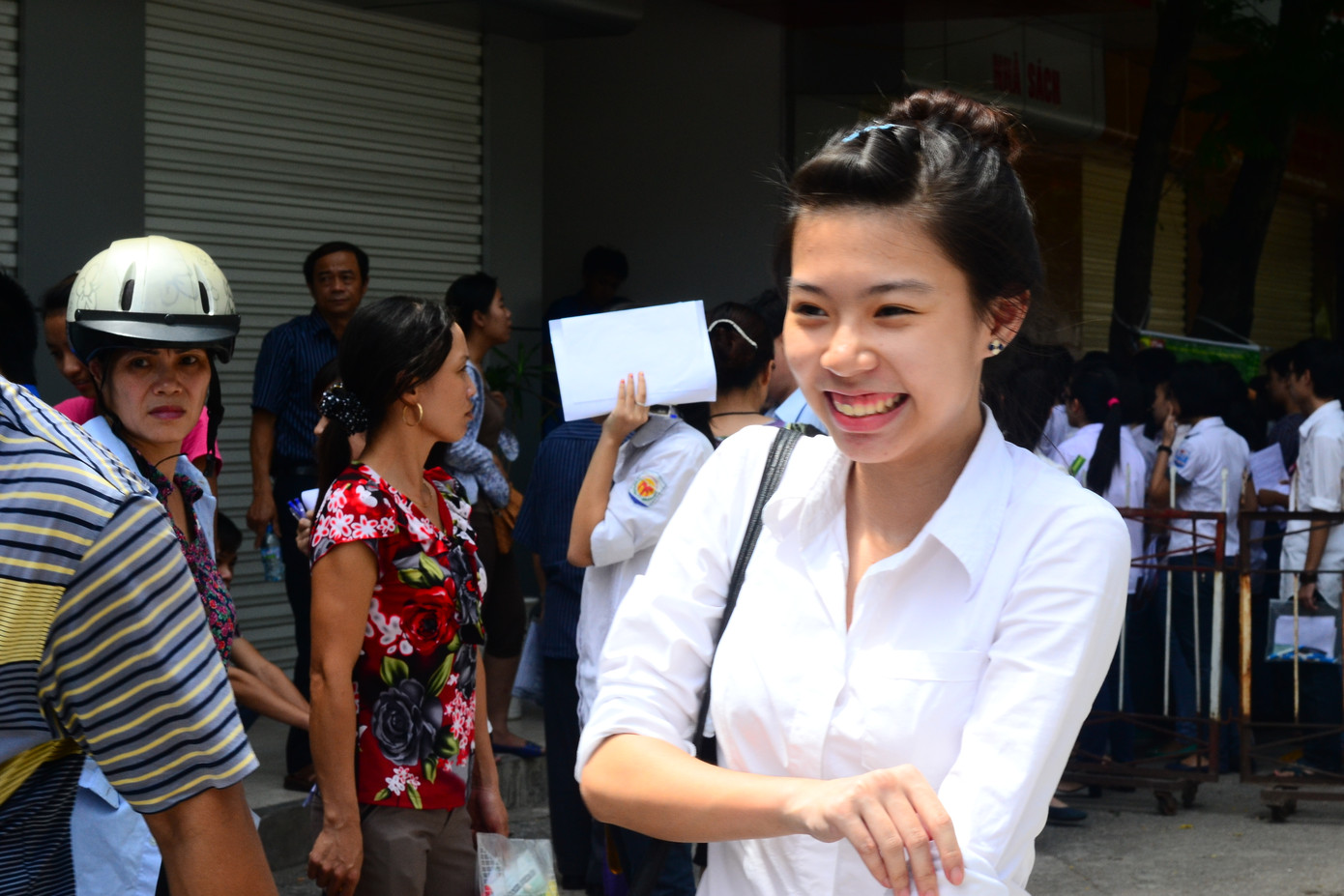 | Thí sinh dự thi ĐH Ngoại thương cười tươi sau khi làm tốt bài thi môn Văn. Ảnh: Đỗ Hợp |