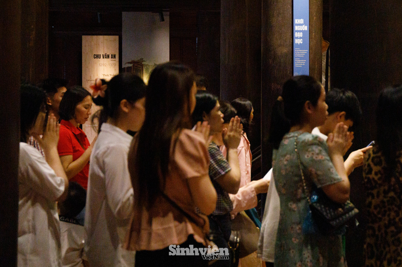 | Rất đông phụ huynh và sĩ tử đến thắp hương ban thờ "Vạn thế sư biểu" Chu Văn An. |