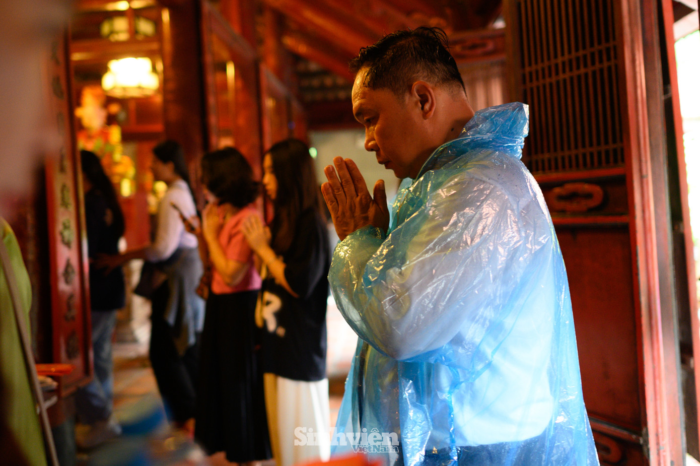 | Dù thời tiết mưa, nhiều sĩ tử và phụ huynh có mặt từ sớm. Đến Văn Miếu Quốc Tử Giám để dâng hương, cầu may trước mỗi kỳ thi quan trọng đã trở thành nét văn hoá của nhiều gia đình, trường học tại Thủ đô. |