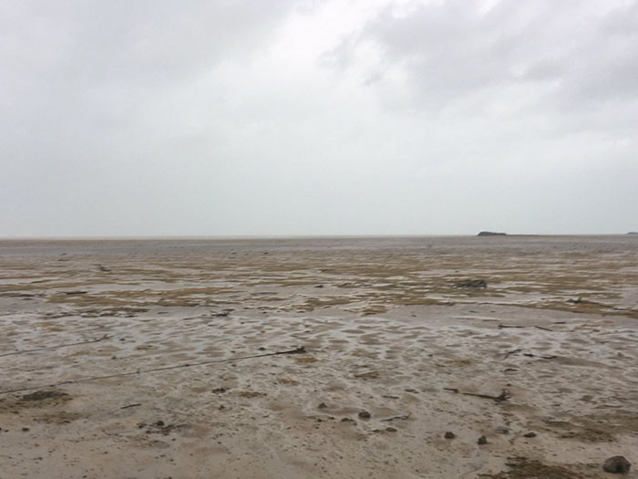 Những vùng biển trơ trọi vì bị "hút cạn" sau cơn bão.
