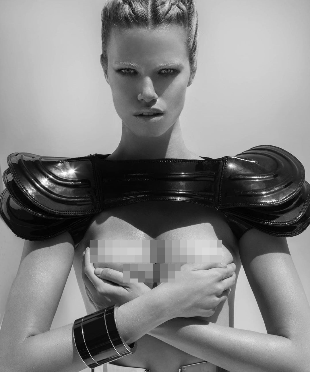 Nàng mẫu tóc vàng cao 1m80 với đôi chân dài miên man thẳng tắp, eo thon ngực đầy.