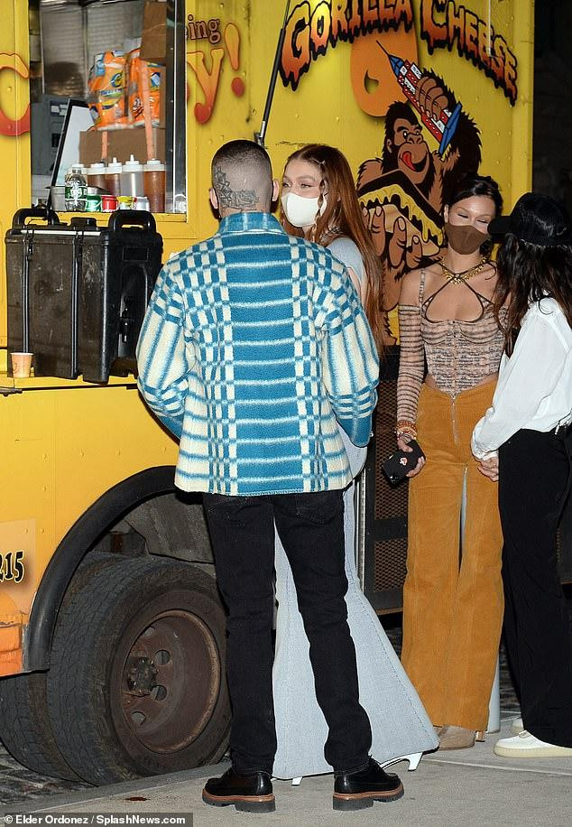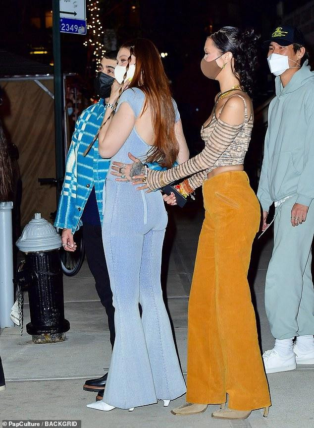 | Cô đi dự tiệc sinh nhật chị gái cũng là siêu mẫu Gigi Hadid (SN 1995). Gigi mặc bộ jumpsuit màu xanh nhạt, khoét lưng sâu và quần ống loe vô cùng sành điệu và thời trang. |