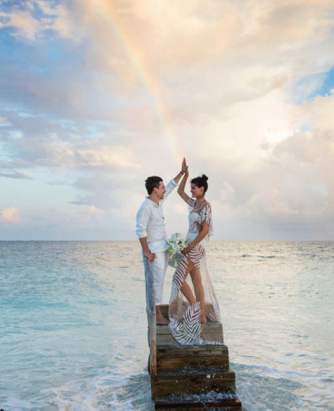 Cặp đôi rất hạnh phúc, cùng trải qua giờ khắc tuyên thệ gắn kết hôn nhân thiêng liêng và nhảy múa tưng bừng trên hòn đảo tuyệt đẹp giữa sự chứng kiến của bạn bè, người thân.