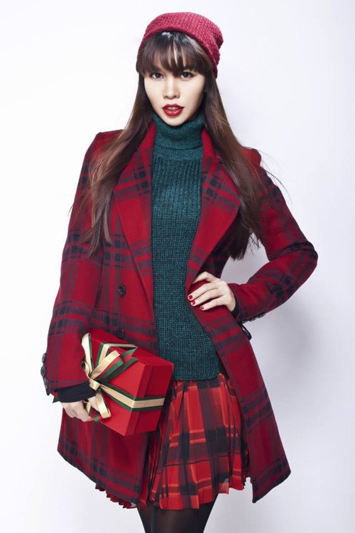 Vốn được biết đến với phong cách thời trang cá tính, Hà Anh đã thực hiện một bộ ảnh tràn ngập sắc màu Giáng sinh như một gợi ý cho các bạn gái về cách phối đồ trang phục mùa đông để vừa ấm áp lại vừa có thể "sành điệu".